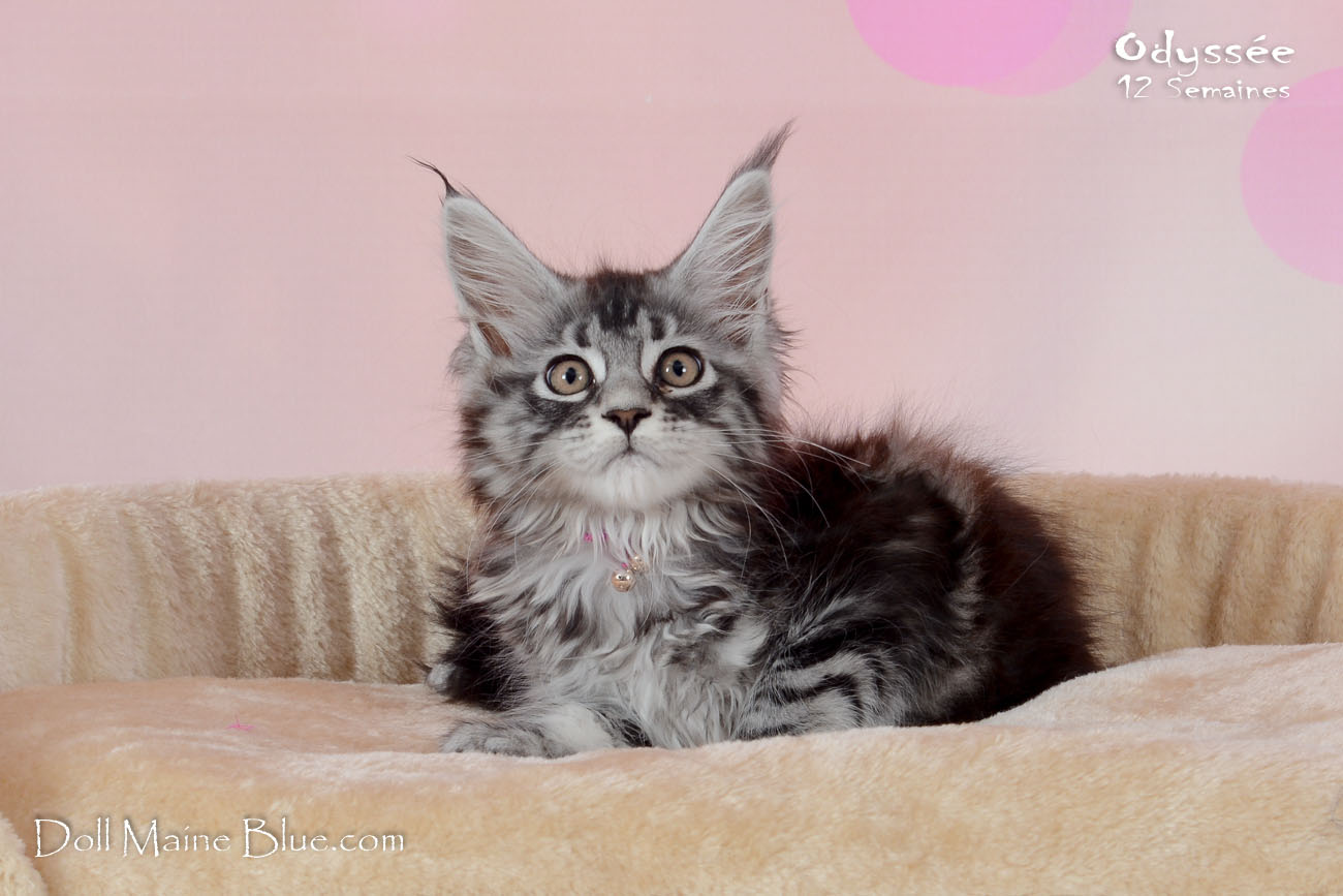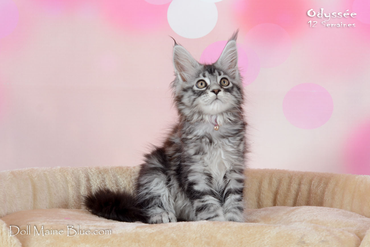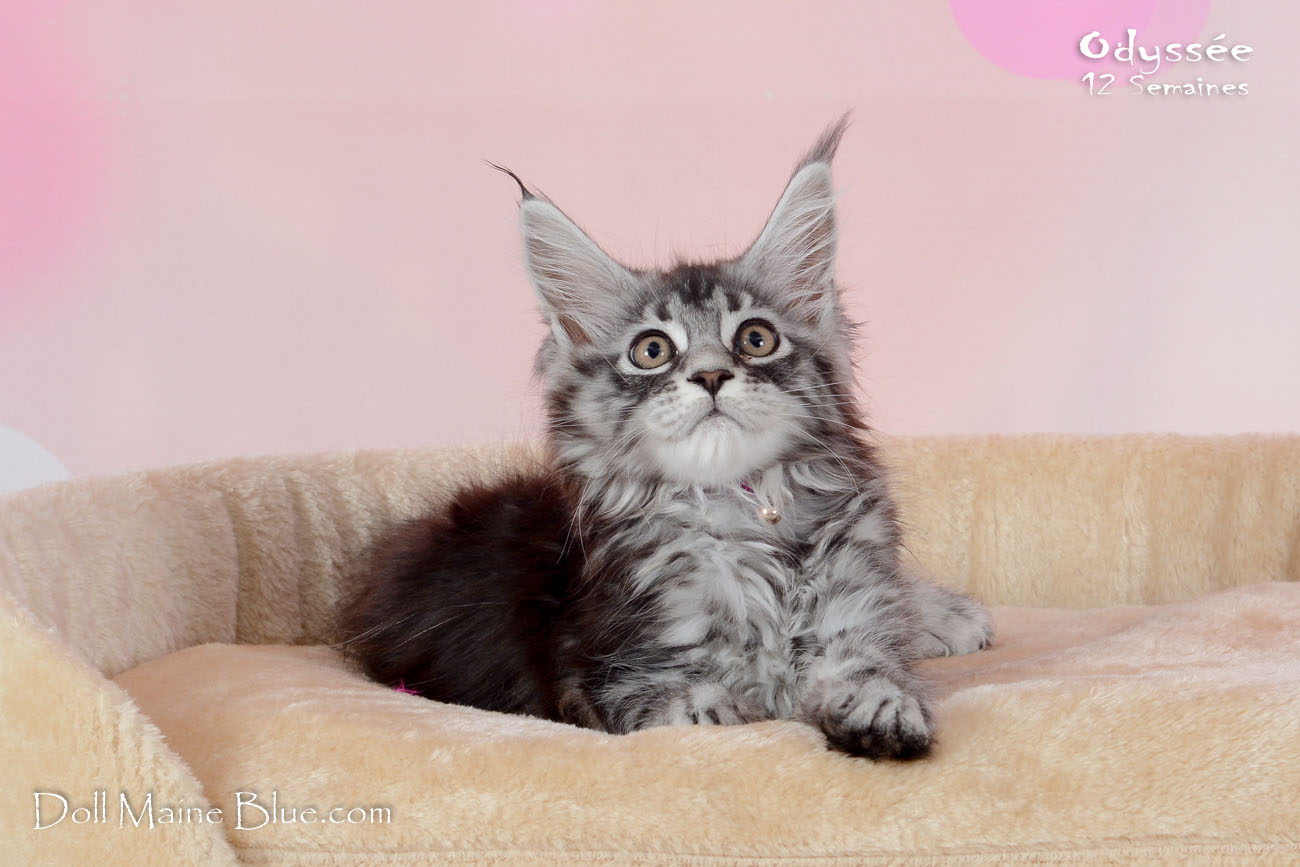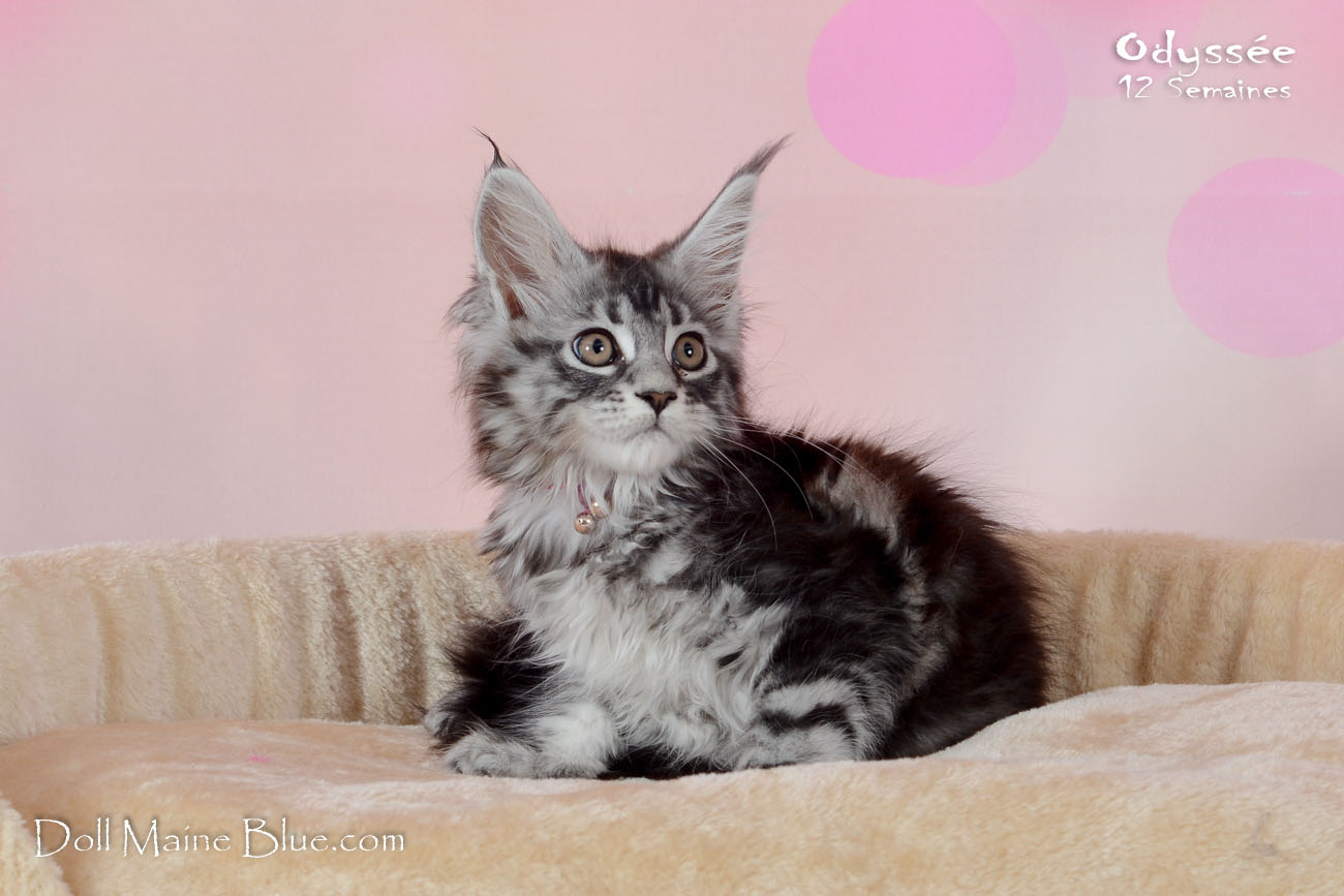 Maine Coon Femelle (Robe: Black silver blotched tabby)