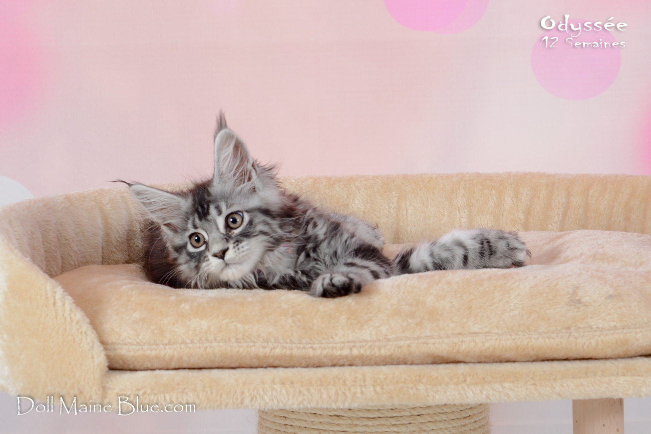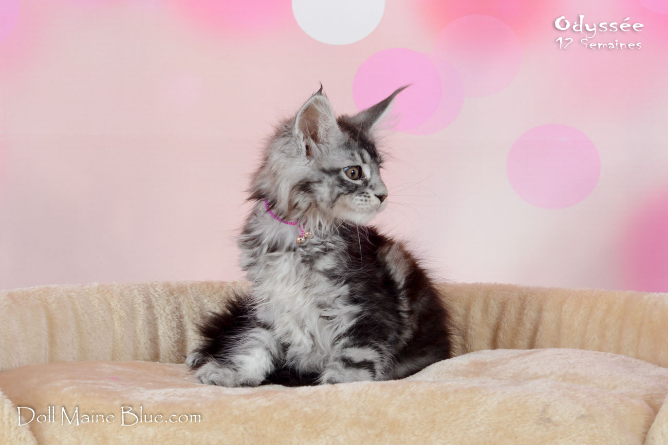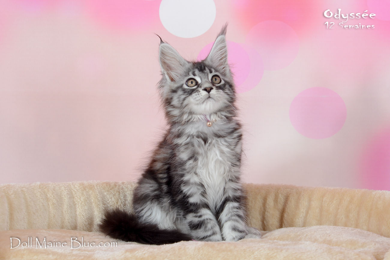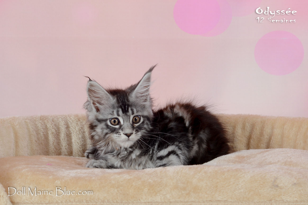 Maine Coon Femelle (Robe: Black silver blotched tabby)