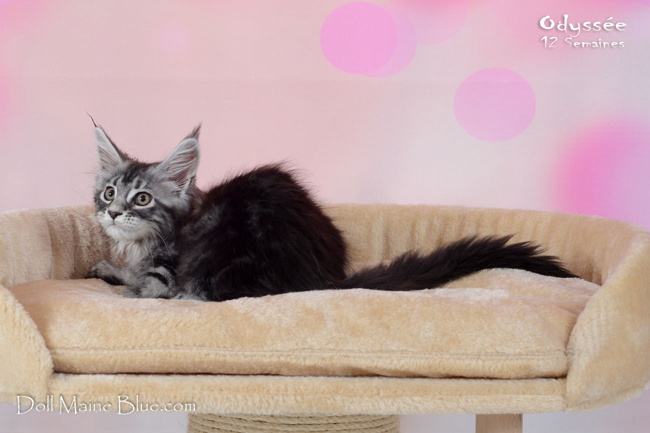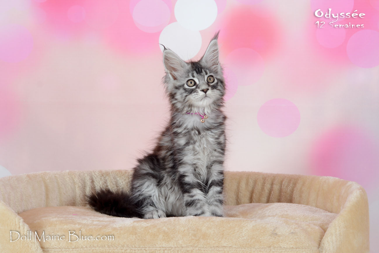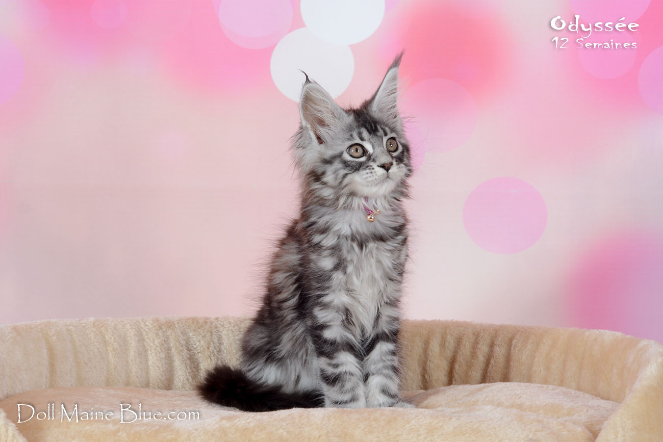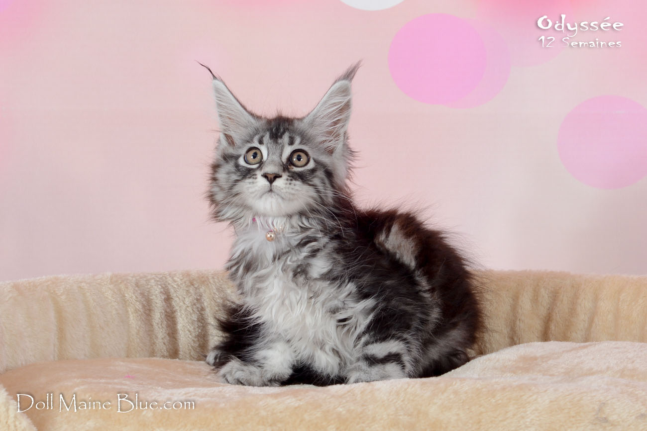 Maine Coon Femelle (Robe: Black silver blotched tabby)