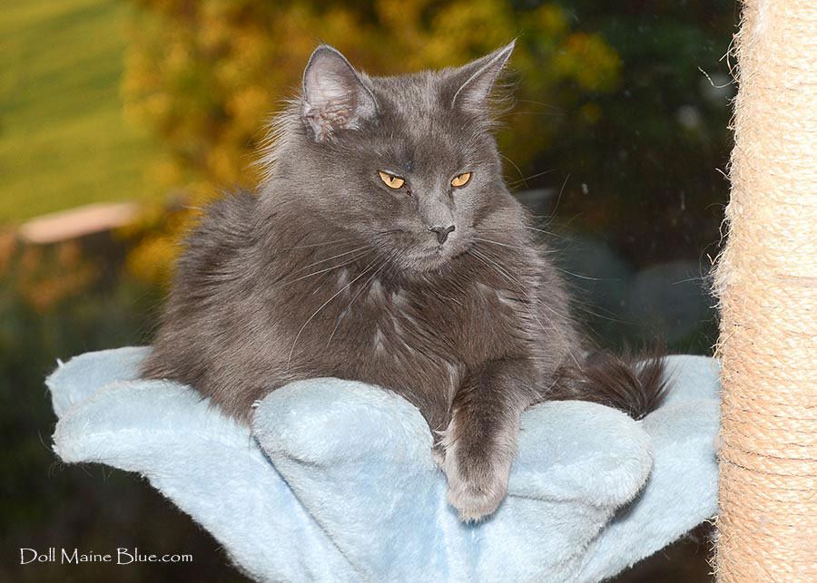 Lalita du Doll-Maine Blue, Première née à la chatterie de couleur Bleu solide.